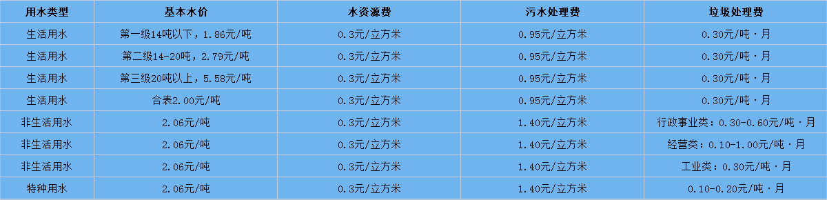 界首市供水價格表